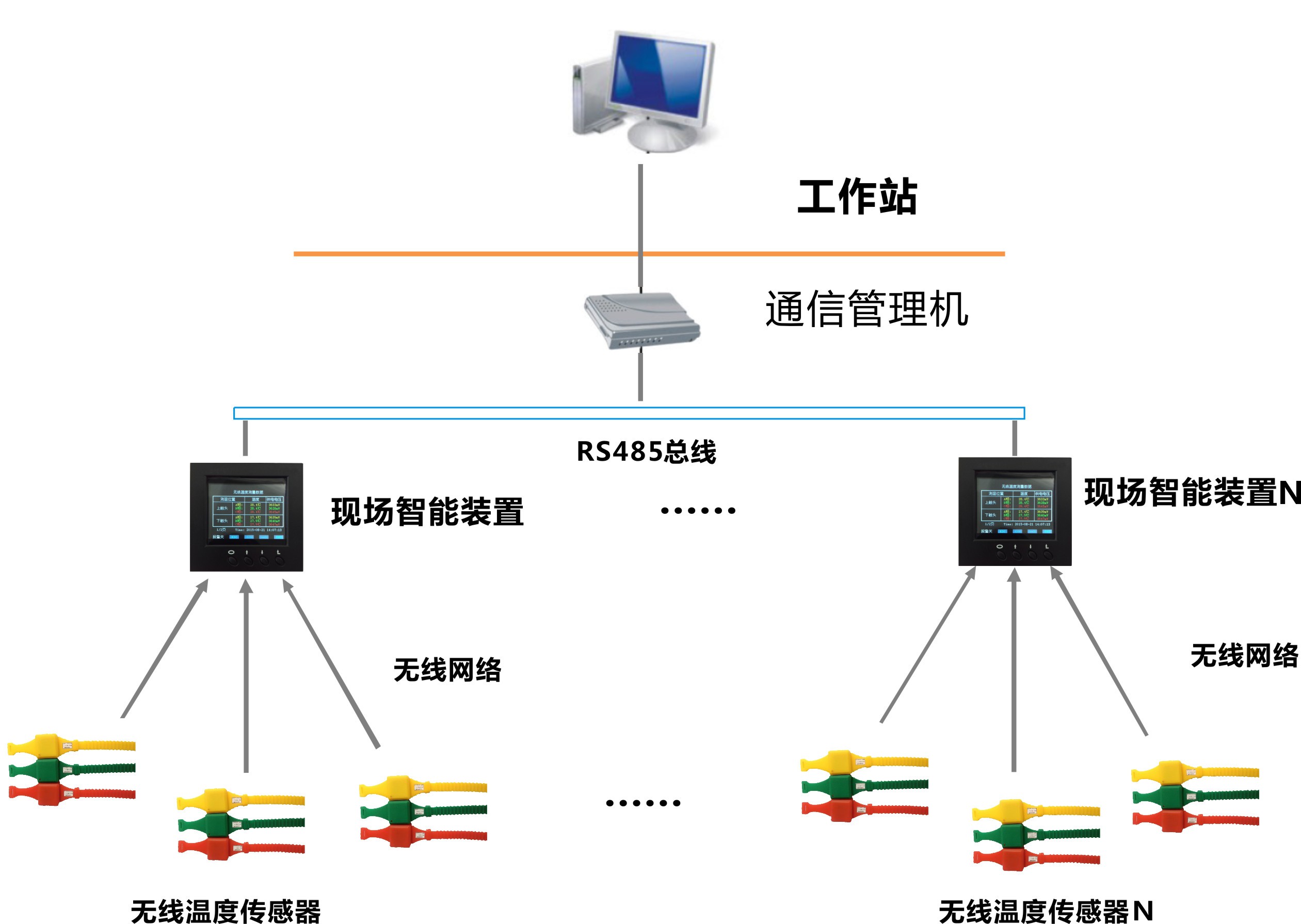 無線式溫度監(jiān)測(cè)系統(tǒng)具有極高的可靠性和安全性,且價(jià)格低廉,可直接安裝到每臺(tái)高壓開關(guān)、母線接頭、戶外刀閘或變壓器上。系統(tǒng)配備標(biāo)準(zhǔn)通訊接口,可聯(lián)網(wǎng)運(yùn)行。通過上位機(jī)軟件,可記錄高壓設(shè)備實(shí)時(shí)運(yùn)行溫度的數(shù)據(jù)。為高壓設(shè)備的維修提供累積數(shù)據(jù),實(shí)現(xiàn)了高壓設(shè)備熱故障預(yù)知維修。